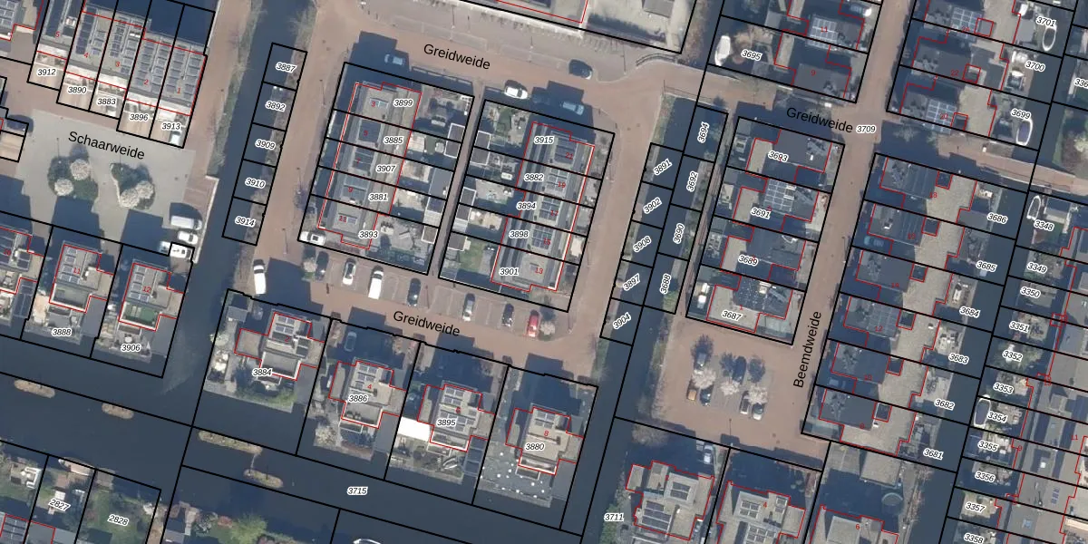 Gebruik de zoekbalk of klik op een perceel voor informatie over de adressen binnen dit perceel.