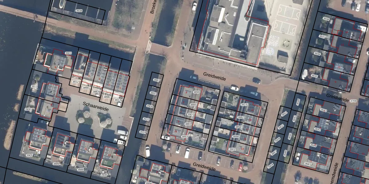 Greidweide 3 is gelegen op kadastraal perceel RWK02C3899. Deze kadastrale aanduiding is uniek en wordt gebruikt door het Kadaster om eigendomsrechten en andere zakelijke rechten vast te leggen. Het perceel maakt onderdeel uit van de kadastrale gemeente Reeuwijk.
