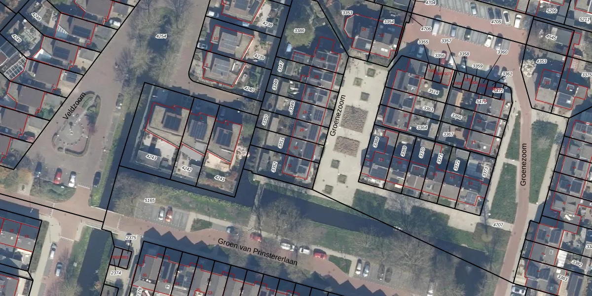 Groenezoom 30 is gelegen op kadastraal perceel RWK02B3351. Deze kadastrale aanduiding is uniek en wordt gebruikt door het Kadaster om eigendomsrechten en andere zakelijke rechten vast te leggen. Het perceel maakt onderdeel uit van de kadastrale gemeente Reeuwijk.