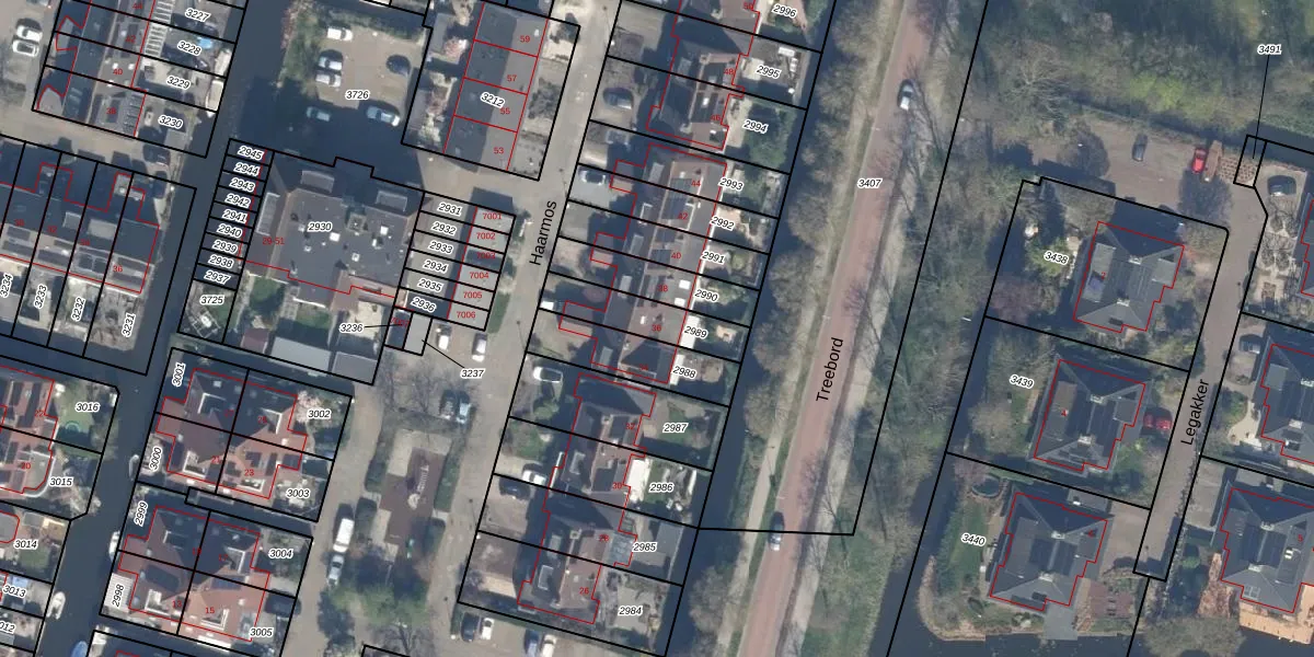 Gebruik de zoekbalk of klik op een perceel voor informatie over de adressen binnen dit perceel.