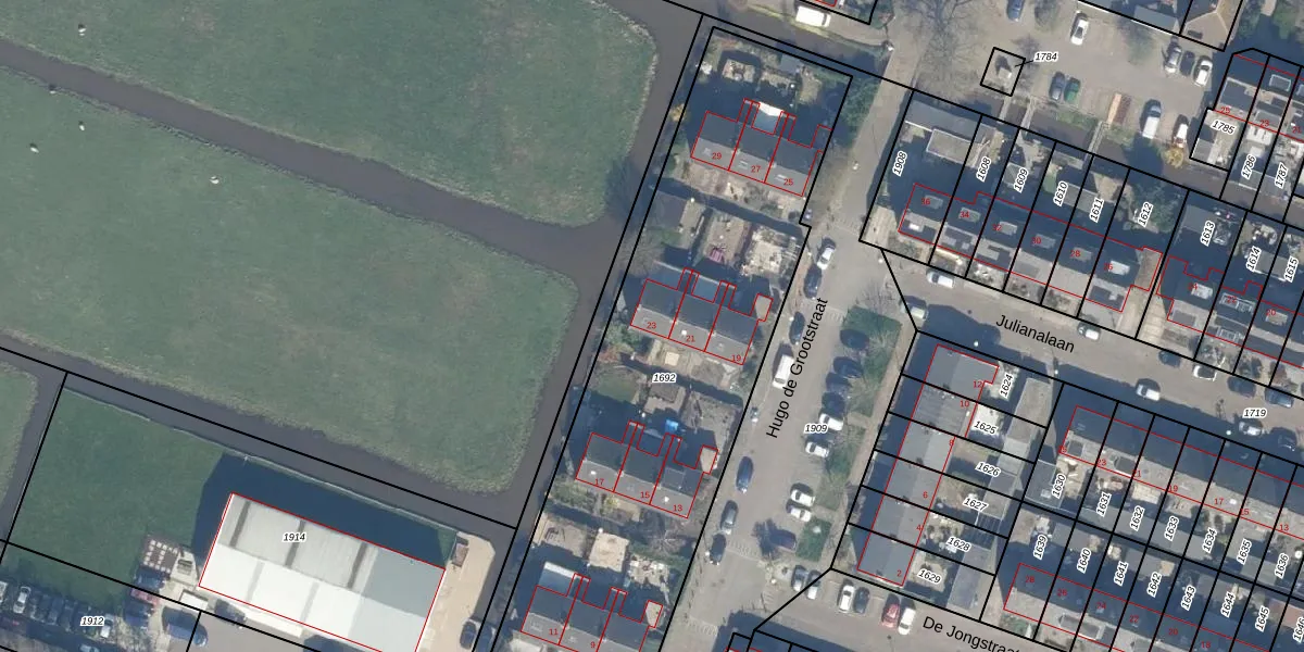 Hugo de Grootstraat 23 is gelegen op kadastraal perceel RWK02D1692. Deze kadastrale aanduiding is uniek en wordt gebruikt door het Kadaster om eigendomsrechten en andere zakelijke rechten vast te leggen. Het perceel maakt onderdeel uit van de kadastrale gemeente Reeuwijk.