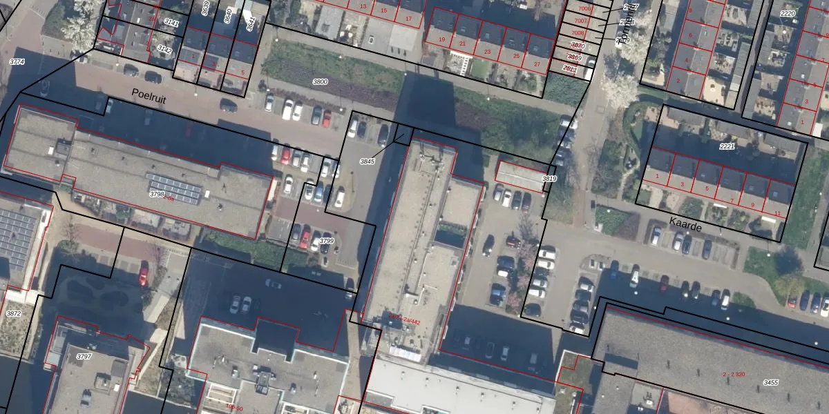 Kaarde 2-a-350 is gelegen op kadastraal perceel RWK02C3844. Deze kadastrale aanduiding is uniek en wordt gebruikt door het Kadaster om eigendomsrechten en andere zakelijke rechten vast te leggen. Het perceel maakt onderdeel uit van de kadastrale gemeente Reeuwijk.