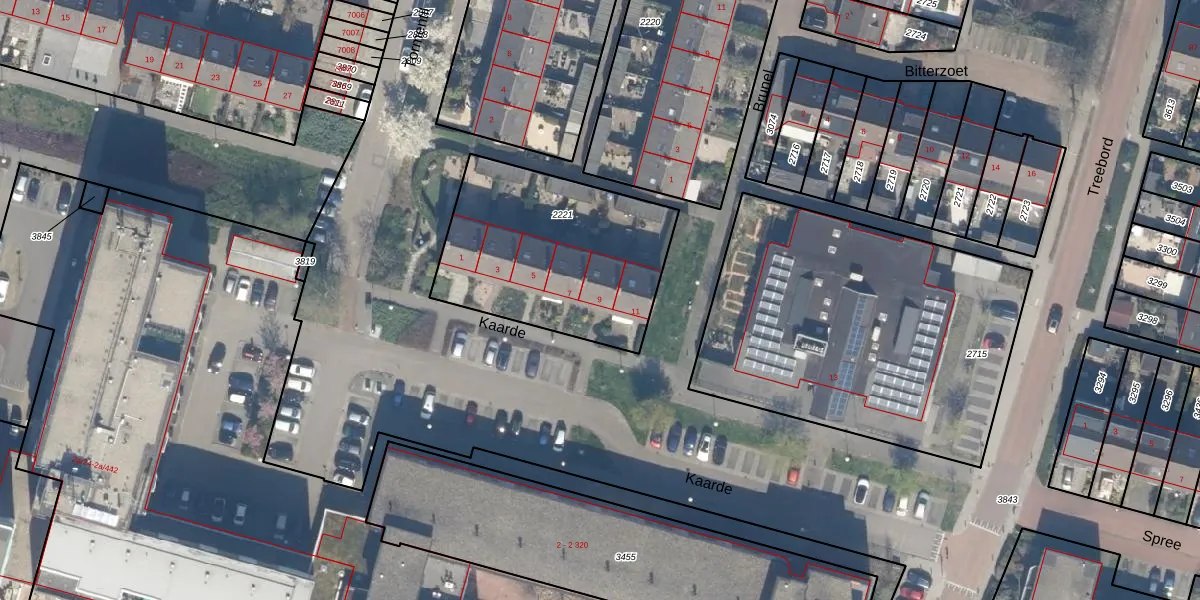 Het perceel waarop Kaarde 9 staat heeft een oppervlakte van 904 m². Dit is een groot perceel. De perceeloppervlakte wordt geregistreerd door het Kadaster. Gedetailleerde informatie over de maten van dit perceel kunt u vinden in het rapport Kadastrale kaart met maatvoering van Kaarde 9.