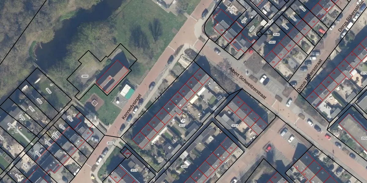 Kennedysingel 20 is gelegen op kadastraal perceel RWK02B3017. Deze kadastrale aanduiding is uniek en wordt gebruikt door het Kadaster om eigendomsrechten en andere zakelijke rechten vast te leggen. Het perceel maakt onderdeel uit van de kadastrale gemeente Reeuwijk.