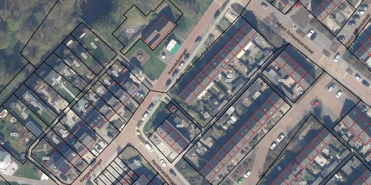 Kennedysingel 8 is gelegen op kadastraal perceel RWK02B3017. Deze kadastrale aanduiding is uniek en wordt gebruikt door het Kadaster om eigendomsrechten en andere zakelijke rechten vast te leggen. Het perceel maakt onderdeel uit van de kadastrale gemeente Reeuwijk.