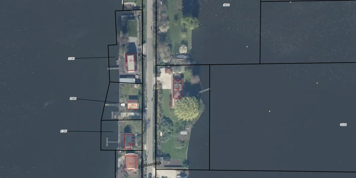 Het perceel waarop Korssendijk 9-1 staat heeft een oppervlakte van 1775 m². Dit is een zeer groot perceel. De perceeloppervlakte wordt geregistreerd door het Kadaster. Gedetailleerde informatie over de maten van dit perceel kunt u vinden in het rapport Kadastrale kaart met maatvoering van Korssendijk 9-1.