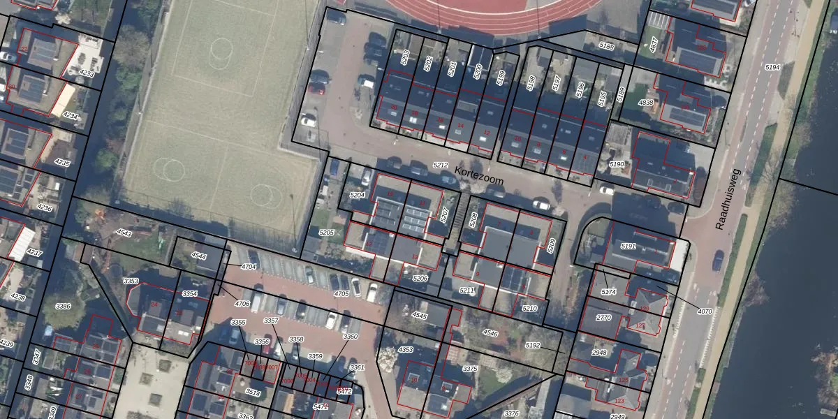 Gebruik de zoekbalk of klik op een perceel voor informatie over de adressen binnen dit perceel.