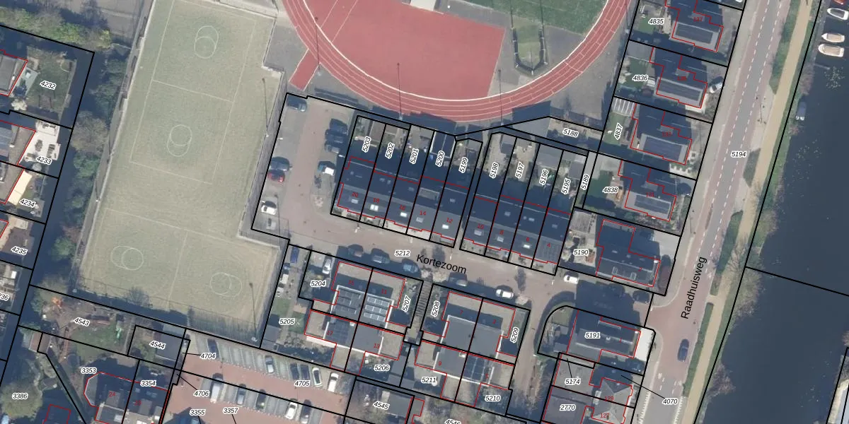 Gebruik de zoekbalk of klik op een perceel voor informatie over de adressen binnen dit perceel.