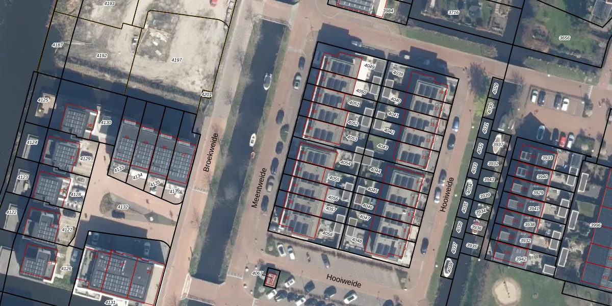 Het adres is gelegen op perceel 4054 in de sectie C en de kadastrale gemeente Reeuwijk. De kadastrale aanduiding is aldus RWK02-C-4054. Het perceel is kleiner dan gemiddeld in Reeuwijk. Het perceel is 172 m² groot, terwijl het gemiddelde ligt op 4985,57 m². Het grootste perceel in de kadastrale gemeente is 1,50 km². Het kleinste perceel heeft een oppervlakte van 0 m². Dit is het enige adres dat aanwezig is op het perceel. In de Basisregistratie Kadaster (BRK) werden de grenzen van het perceel geregistreerd op 19-04-2021.