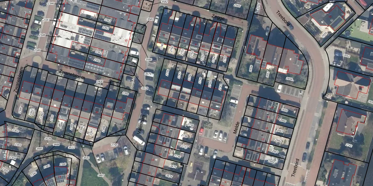 Gebruik de zoekbalk of klik op een perceel voor informatie over de adressen binnen dit perceel.