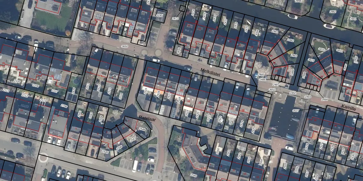 Melkdistel 16 is gelegen op kadastraal perceel RWK02C2518. Deze kadastrale aanduiding is uniek en wordt gebruikt door het Kadaster om eigendomsrechten en andere zakelijke rechten vast te leggen. Het perceel maakt onderdeel uit van de kadastrale gemeente Reeuwijk.