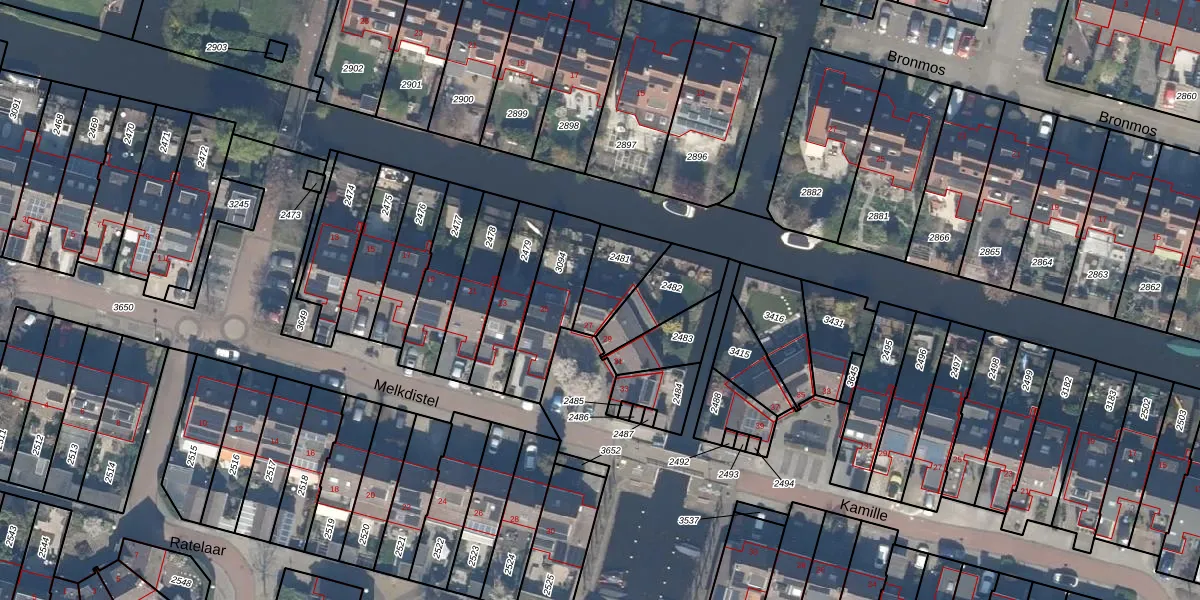 Gebruik de zoekbalk of klik op een perceel voor informatie over de adressen binnen dit perceel.
