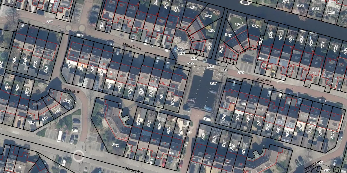 Melkdistel 30 is gelegen op kadastraal perceel RWK02C2525. Deze kadastrale aanduiding is uniek en wordt gebruikt door het Kadaster om eigendomsrechten en andere zakelijke rechten vast te leggen. Het perceel maakt onderdeel uit van de kadastrale gemeente Reeuwijk.