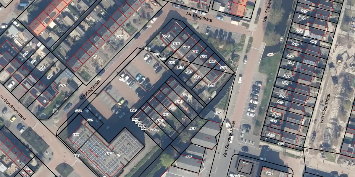 Mesdagstraat 12 is gelegen op kadastraal perceel RWK02B5324. Deze kadastrale aanduiding is uniek en wordt gebruikt door het Kadaster om eigendomsrechten en andere zakelijke rechten vast te leggen. Het perceel maakt onderdeel uit van de kadastrale gemeente Reeuwijk.