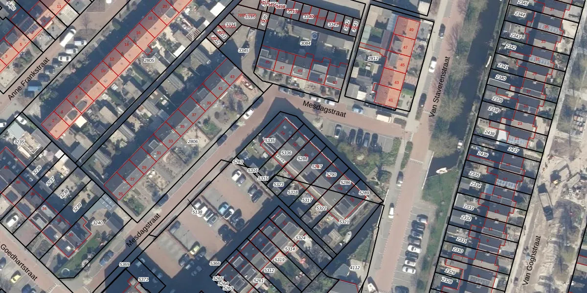Het perceel waarop Mesdagstraat 16 staat heeft een oppervlakte van 122 m². Dit is een middelgroot perceel. De perceeloppervlakte wordt geregistreerd door het Kadaster. Gedetailleerde informatie over de maten van dit perceel kunt u vinden in het rapport Kadastrale kaart met maatvoering van Mesdagstraat 16.