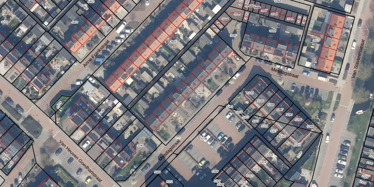 Mesdagstraat 33 is gelegen op kadastraal perceel RWK02B2806. Deze kadastrale aanduiding is uniek en wordt gebruikt door het Kadaster om eigendomsrechten en andere zakelijke rechten vast te leggen. Het perceel maakt onderdeel uit van de kadastrale gemeente Reeuwijk.
