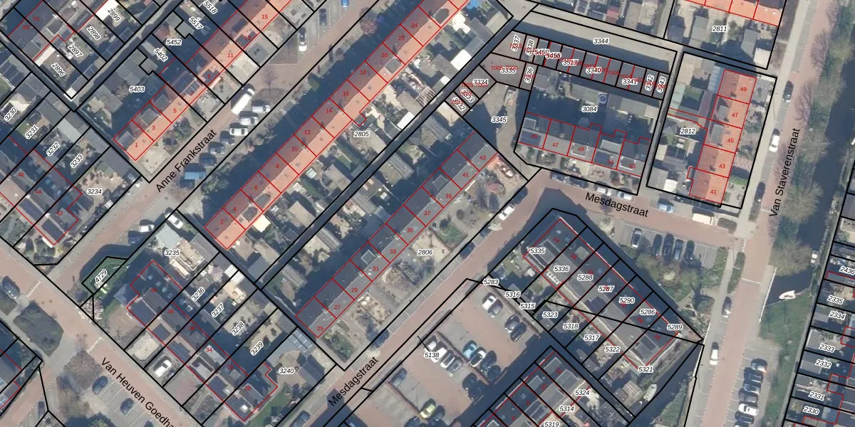 Het perceel waarop Mesdagstraat 37 staat heeft een oppervlakte van 1699 m². Dit is een zeer groot perceel. De perceeloppervlakte wordt geregistreerd door het Kadaster. Gedetailleerde informatie over de maten van dit perceel kunt u vinden in het rapport Kadastrale kaart met maatvoering van Mesdagstraat 37.