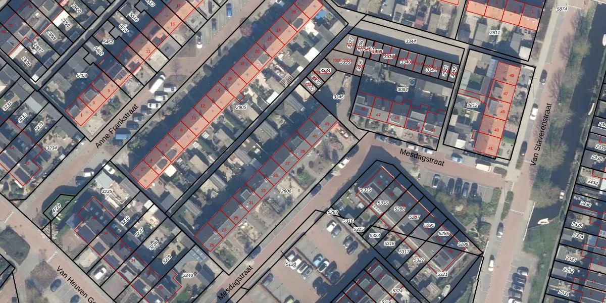 Mesdagstraat 39 is gelegen op kadastraal perceel RWK02B2806. Deze kadastrale aanduiding is uniek en wordt gebruikt door het Kadaster om eigendomsrechten en andere zakelijke rechten vast te leggen. Het perceel maakt onderdeel uit van de kadastrale gemeente Reeuwijk.