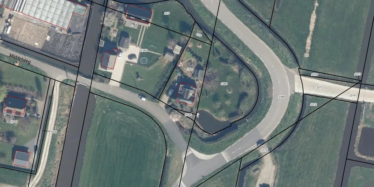 Middelweg 2 is gelegen op kadastraal perceel RWK02D1503. Deze kadastrale aanduiding is uniek en wordt gebruikt door het Kadaster om eigendomsrechten en andere zakelijke rechten vast te leggen. Het perceel maakt onderdeel uit van de kadastrale gemeente Reeuwijk.