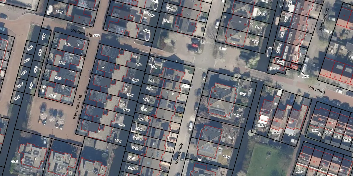 Gebruik de zoekbalk of klik op een perceel voor informatie over de adressen binnen dit perceel.