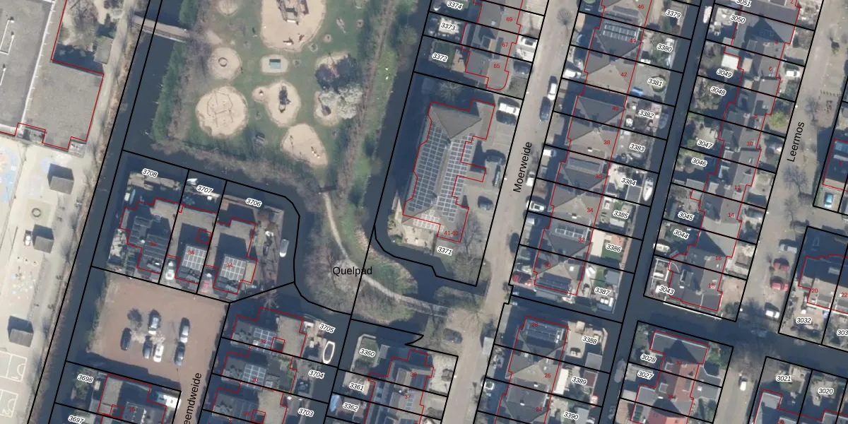 Het perceel waarop Moerweide 43 staat heeft een oppervlakte van 1171 m². Dit is een zeer groot perceel. De perceeloppervlakte wordt geregistreerd door het Kadaster. Gedetailleerde informatie over de maten van dit perceel kunt u vinden in het rapport Kadastrale kaart met maatvoering van Moerweide 43.