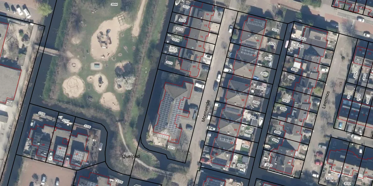 Het perceel waarop Moerweide 63 staat heeft een oppervlakte van 1171 m². Dit is een zeer groot perceel. De perceeloppervlakte wordt geregistreerd door het Kadaster. Gedetailleerde informatie over de maten van dit perceel kunt u vinden in het rapport Kadastrale kaart met maatvoering van Moerweide 63.