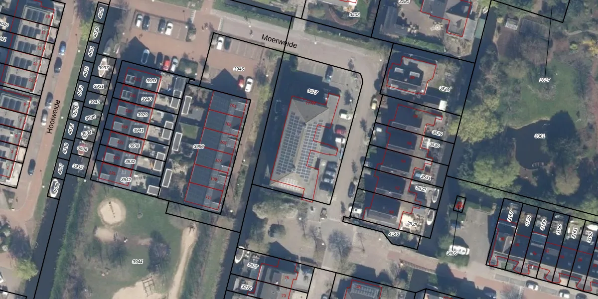 Het perceel waarop Moerweide 87 staat heeft een oppervlakte van 1245 m². Dit is een zeer groot perceel. De perceeloppervlakte wordt geregistreerd door het Kadaster. Gedetailleerde informatie over de maten van dit perceel kunt u vinden in het rapport Kadastrale kaart met maatvoering van Moerweide 87.