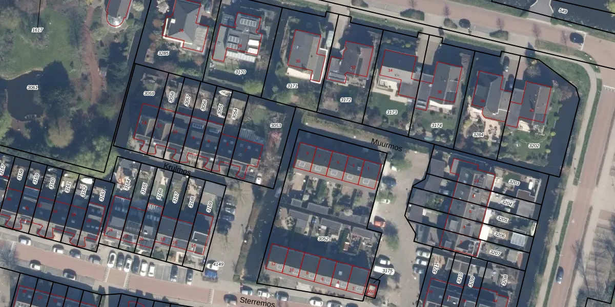 Muurmos 9 is gelegen op kadastraal perceel RWK02C3052. Deze kadastrale aanduiding is uniek en wordt gebruikt door het Kadaster om eigendomsrechten en andere zakelijke rechten vast te leggen. Het perceel maakt onderdeel uit van de kadastrale gemeente Reeuwijk.