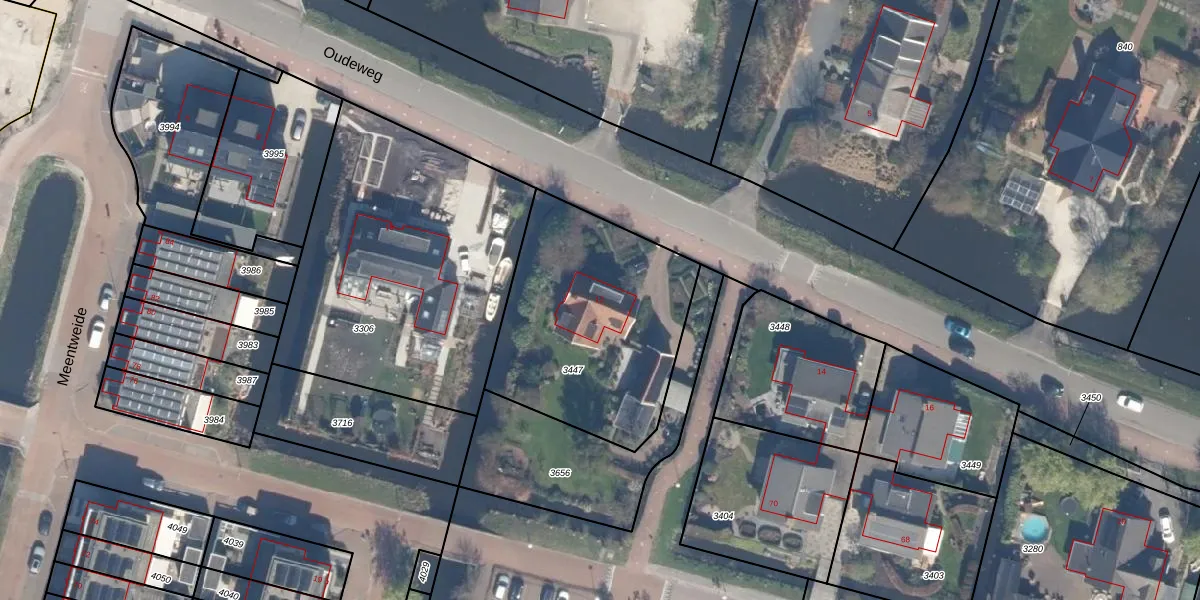 Oudeweg 12 is gelegen op kadastraal perceel RWK02C3447. Deze kadastrale aanduiding is uniek en wordt gebruikt door het Kadaster om eigendomsrechten en andere zakelijke rechten vast te leggen. Het perceel maakt onderdeel uit van de kadastrale gemeente Reeuwijk.