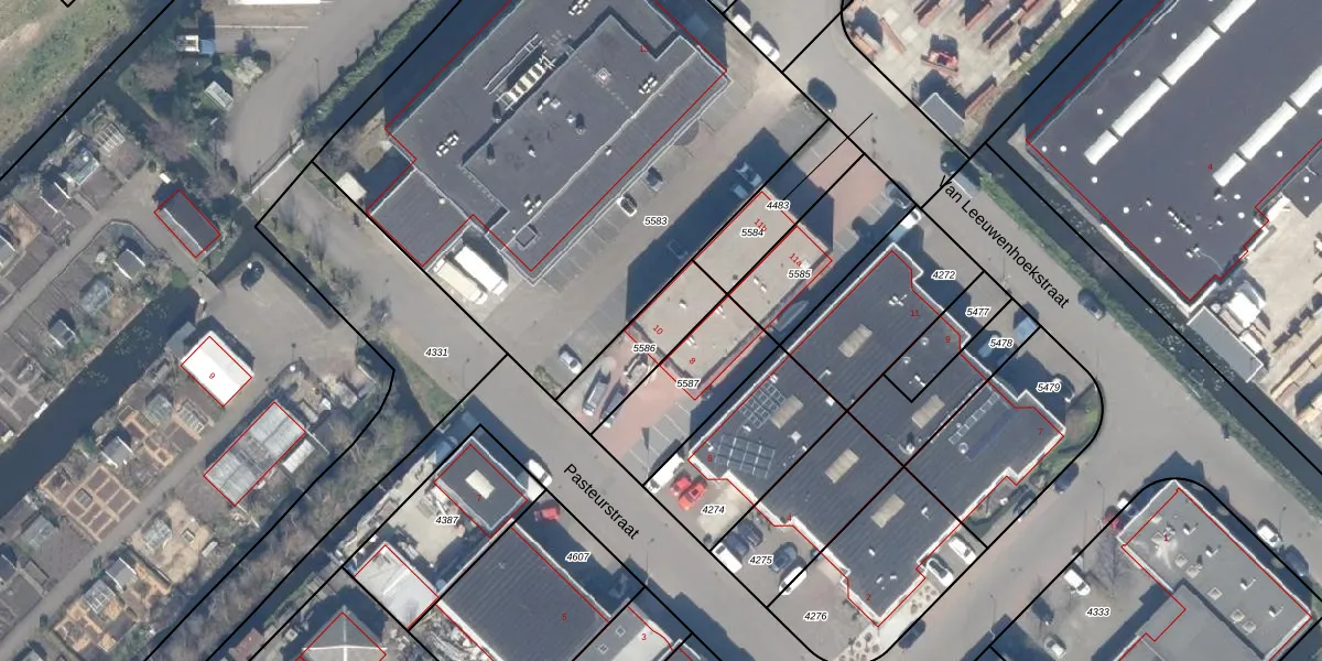 Pasteurstraat 10 is gelegen op kadastraal perceel RWK02B5586. Deze kadastrale aanduiding is uniek en wordt gebruikt door het Kadaster om eigendomsrechten en andere zakelijke rechten vast te leggen. Het perceel maakt onderdeel uit van de kadastrale gemeente Reeuwijk.
