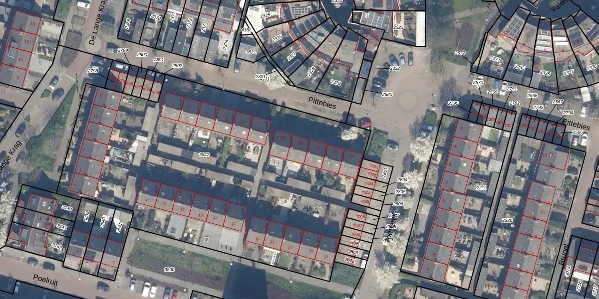 Het perceel waarop Pittebies 16 staat heeft een oppervlakte van 4693 m². Dit is een zeer groot perceel. De perceeloppervlakte wordt geregistreerd door het Kadaster. Gedetailleerde informatie over de maten van dit perceel kunt u vinden in het rapport Kadastrale kaart met maatvoering van Pittebies 16.