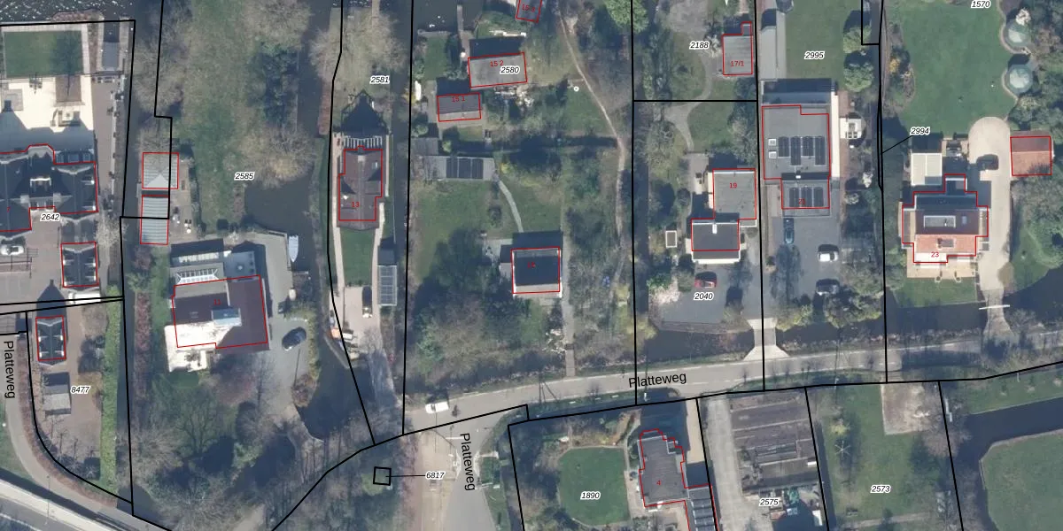Platteweg 15 is gelegen op kadastraal perceel RWK02G2580. Deze kadastrale aanduiding is uniek en wordt gebruikt door het Kadaster om eigendomsrechten en andere zakelijke rechten vast te leggen. Het perceel maakt onderdeel uit van de kadastrale gemeente Reeuwijk.
