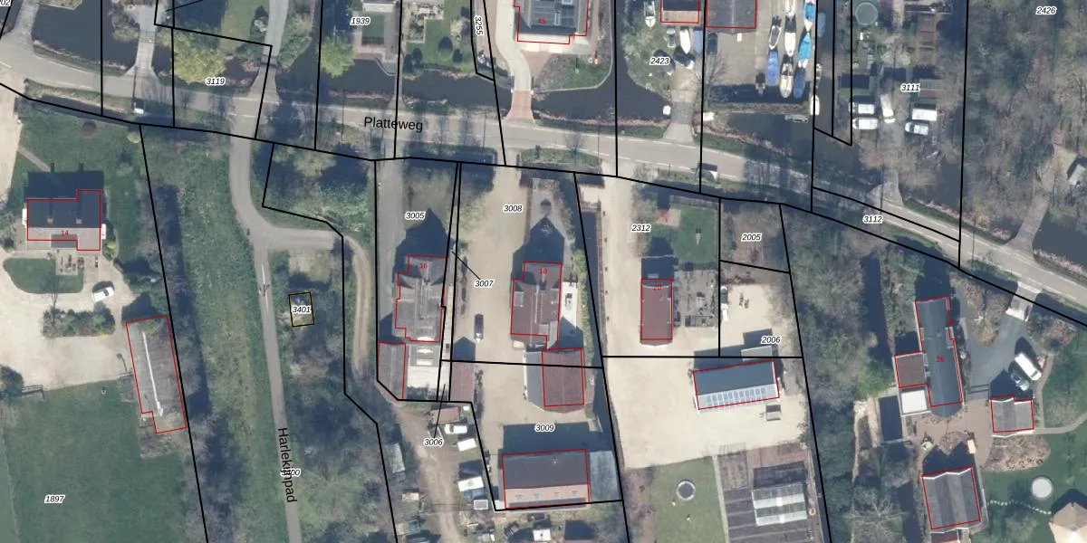 Platteweg 18 is gelegen op kadastraal perceel RWK02G3008. Deze kadastrale aanduiding is uniek en wordt gebruikt door het Kadaster om eigendomsrechten en andere zakelijke rechten vast te leggen. Het perceel maakt onderdeel uit van de kadastrale gemeente Reeuwijk.