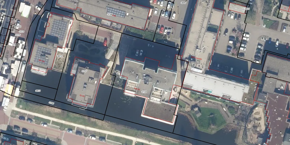 Het perceel waarop het adres ligt is RWK02-C-3718. De afkorting 'RWK02' staat voor kadastrale gemeente Reeuwijk. Het perceel is kleiner dan gemiddeld in Reeuwijk. Het perceel is 2715 m² groot, terwijl het gemiddelde ligt op 4985,57 m². Het grootste perceel in de kadastrale gemeente is 1,50 km². Het kleinste perceel heeft een oppervlakte van 0 m². Op het perceel liggen in totaal 21 adressen. In de Basisregistratie Kadaster (BRK) werden de grenzen van het perceel geregistreerd op 08-04-2013.