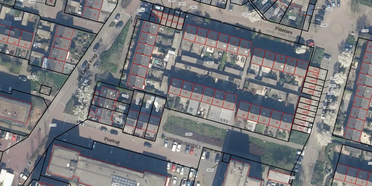 Het perceel waarop Poelruit 9 staat heeft een oppervlakte van 4693 m². Dit is een zeer groot perceel. De perceeloppervlakte wordt geregistreerd door het Kadaster. Gedetailleerde informatie over de maten van dit perceel kunt u vinden in het rapport Kadastrale kaart met maatvoering van Poelruit 9.