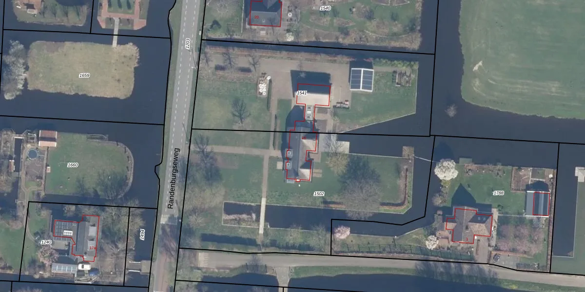 Het perceel waarop Randenburgseweg 18 staat heeft een oppervlakte van 3025 m². Dit is een zeer groot perceel. De perceeloppervlakte wordt geregistreerd door het Kadaster. Gedetailleerde informatie over de maten van dit perceel kunt u vinden in het rapport Kadastrale kaart met maatvoering van Randenburgseweg 18.