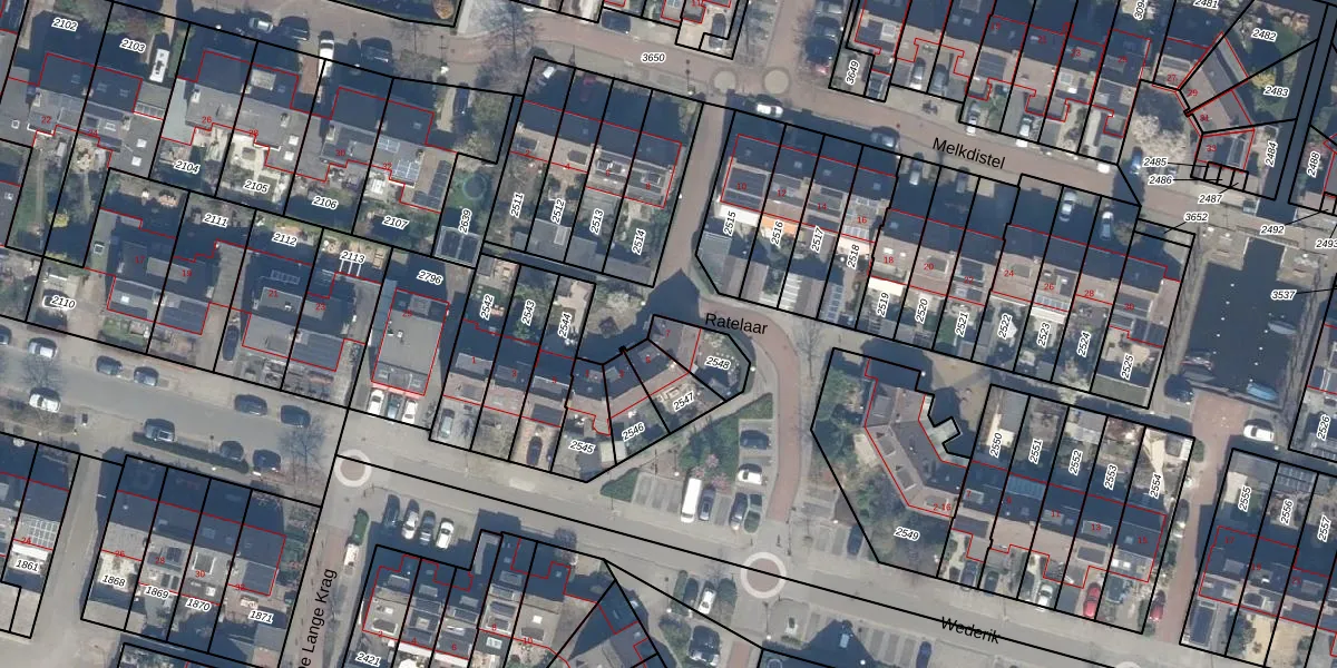 Het perceel waarop Ratelaar 7 staat heeft een oppervlakte van 107 m². Dit is een middelgroot perceel. De perceeloppervlakte wordt geregistreerd door het Kadaster. Gedetailleerde informatie over de maten van dit perceel kunt u vinden in het rapport Kadastrale kaart met maatvoering van Ratelaar 7.