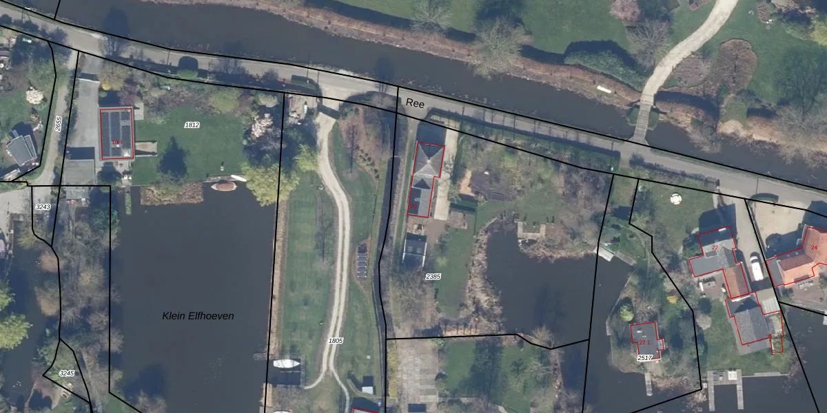 Het perceel waarop Ree 20 staat heeft een oppervlakte van 2425 m². Dit is een zeer groot perceel. De perceeloppervlakte wordt geregistreerd door het Kadaster. Gedetailleerde informatie over de maten van dit perceel kunt u vinden in het rapport Kadastrale kaart met maatvoering van Ree 20.