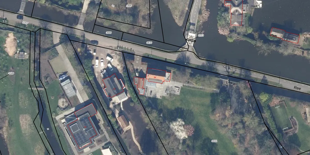 Het perceel waarop Ree 34 staat heeft een oppervlakte van 8065 m². Dit is een zeer groot perceel. De perceeloppervlakte wordt geregistreerd door het Kadaster. Gedetailleerde informatie over de maten van dit perceel kunt u vinden in het rapport Kadastrale kaart met maatvoering van Ree 34.