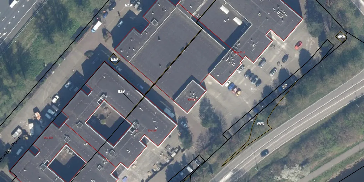 Het perceel waarop Reeuwijkse Poort 301-b staat heeft een oppervlakte van 1,4 ha. Dit is een zeer groot perceel. De perceeloppervlakte wordt geregistreerd door het Kadaster. Gedetailleerde informatie over de maten van dit perceel kunt u vinden in het rapport Kadastrale kaart met maatvoering van Reeuwijkse Poort 301-b.
