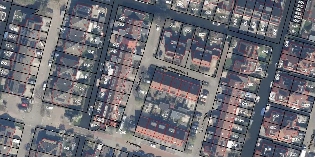 Rendiermos 9 is gelegen op kadastraal perceel RWK02C3017. Deze kadastrale aanduiding is uniek en wordt gebruikt door het Kadaster om eigendomsrechten en andere zakelijke rechten vast te leggen. Het perceel maakt onderdeel uit van de kadastrale gemeente Reeuwijk.