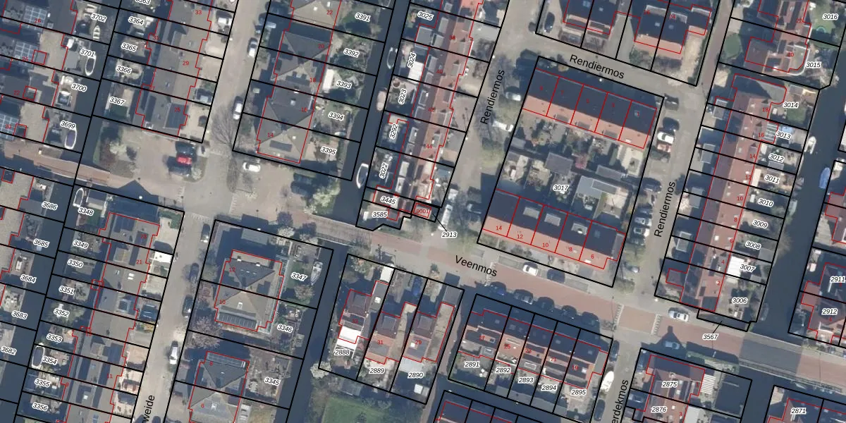 Rendiermos 9001 is gelegen op kadastraal perceel RWK02C2913. Deze kadastrale aanduiding is uniek en wordt gebruikt door het Kadaster om eigendomsrechten en andere zakelijke rechten vast te leggen. Het perceel maakt onderdeel uit van de kadastrale gemeente Reeuwijk.