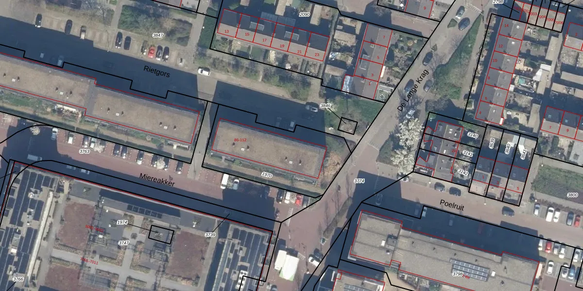 Het perceel waarop Rietgors 102 staat heeft een oppervlakte van 970 m². Dit is een groot perceel. De perceeloppervlakte wordt geregistreerd door het Kadaster. Gedetailleerde informatie over de maten van dit perceel kunt u vinden in het rapport Kadastrale kaart met maatvoering van Rietgors 102.