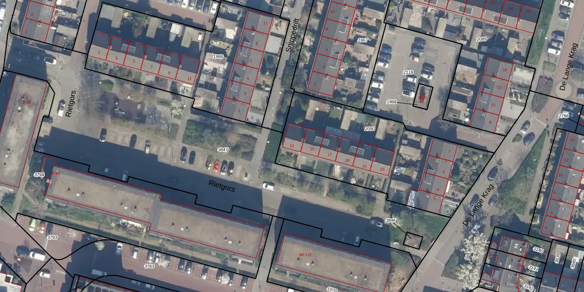 Het perceel waarop Rietgors 13 staat heeft een oppervlakte van 1693 m². Dit is een zeer groot perceel. De perceeloppervlakte wordt geregistreerd door het Kadaster. Gedetailleerde informatie over de maten van dit perceel kunt u vinden in het rapport Kadastrale kaart met maatvoering van Rietgors 13.