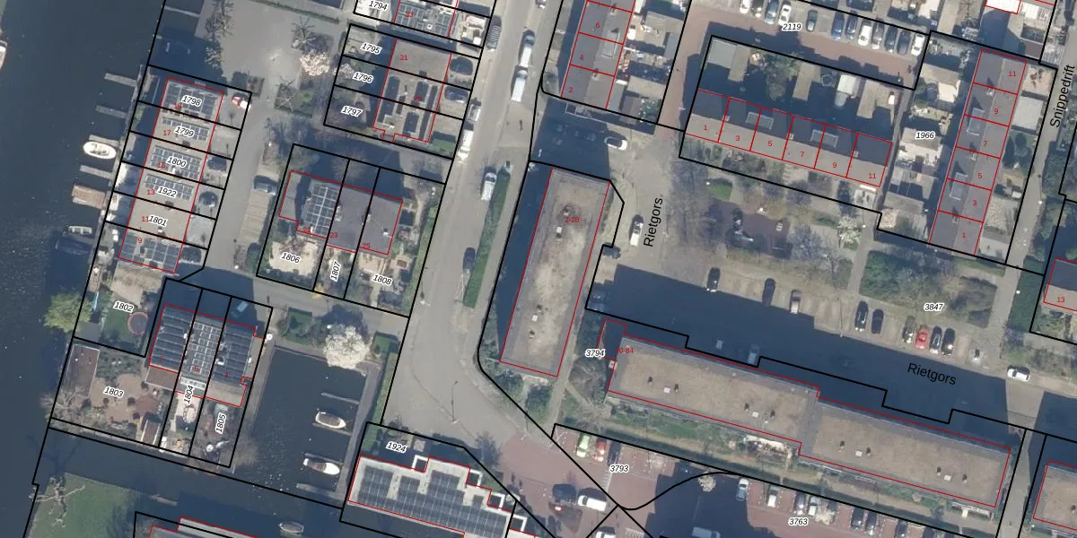 Het perceel waarop Rietgors 16 staat heeft een oppervlakte van 2588 m². Dit is een zeer groot perceel. De perceeloppervlakte wordt geregistreerd door het Kadaster. Gedetailleerde informatie over de maten van dit perceel kunt u vinden in het rapport Kadastrale kaart met maatvoering van Rietgors 16.
