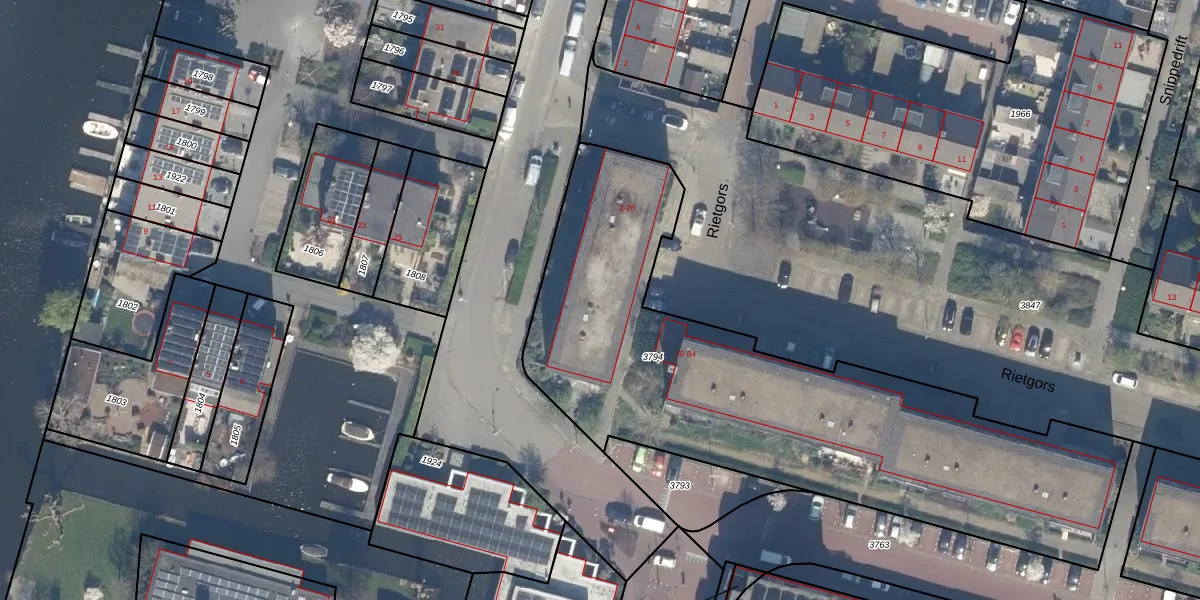 Het perceel waarop Rietgors 20 staat heeft een oppervlakte van 2588 m². Dit is een zeer groot perceel. De perceeloppervlakte wordt geregistreerd door het Kadaster. Gedetailleerde informatie over de maten van dit perceel kunt u vinden in het rapport Kadastrale kaart met maatvoering van Rietgors 20.