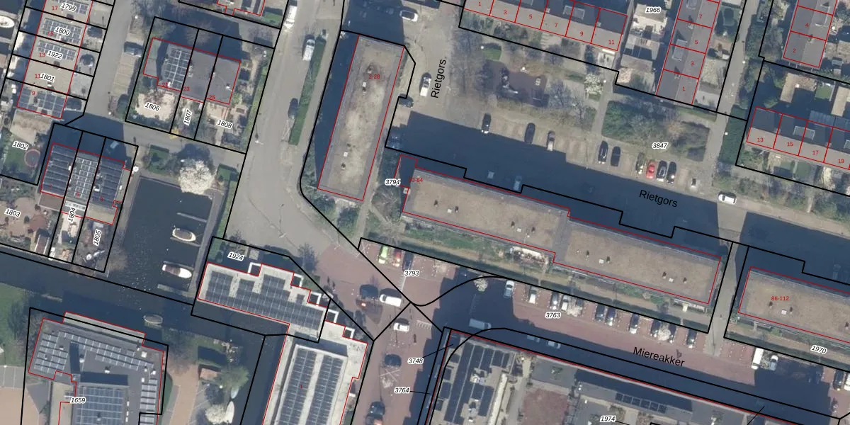 Het perceel waarop Rietgors 36 staat heeft een oppervlakte van 2588 m². Dit is een zeer groot perceel. De perceeloppervlakte wordt geregistreerd door het Kadaster. Gedetailleerde informatie over de maten van dit perceel kunt u vinden in het rapport Kadastrale kaart met maatvoering van Rietgors 36.