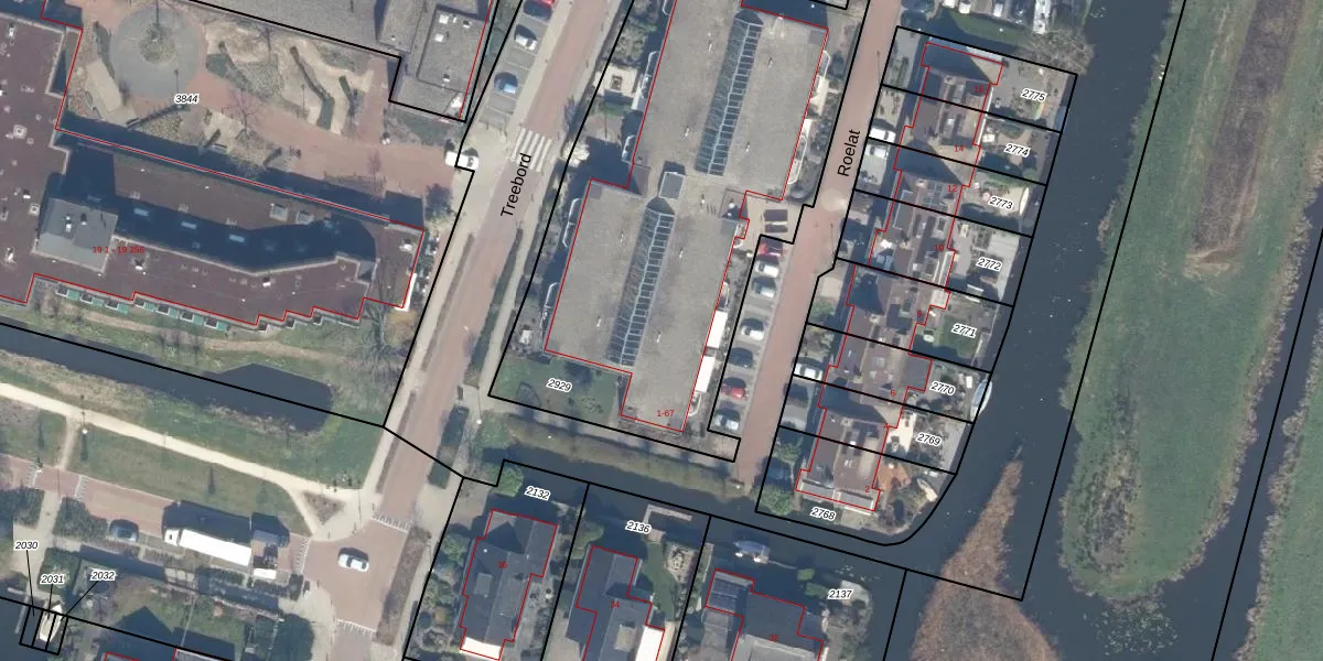 Het perceel waarop Roelat 19 staat heeft een oppervlakte van 2508 m². Dit is een zeer groot perceel. De perceeloppervlakte wordt geregistreerd door het Kadaster. Gedetailleerde informatie over de maten van dit perceel kunt u vinden in het rapport Kadastrale kaart met maatvoering van Roelat 19.