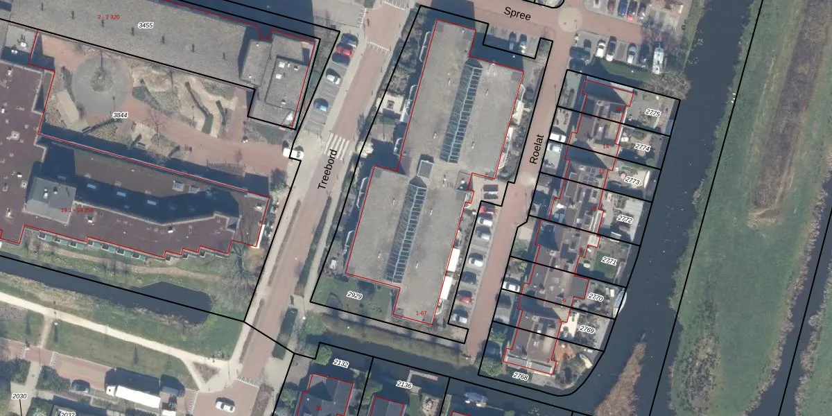 Het perceel waarop Roelat 33 staat heeft een oppervlakte van 2508 m². Dit is een zeer groot perceel. De perceeloppervlakte wordt geregistreerd door het Kadaster. Gedetailleerde informatie over de maten van dit perceel kunt u vinden in het rapport Kadastrale kaart met maatvoering van Roelat 33.