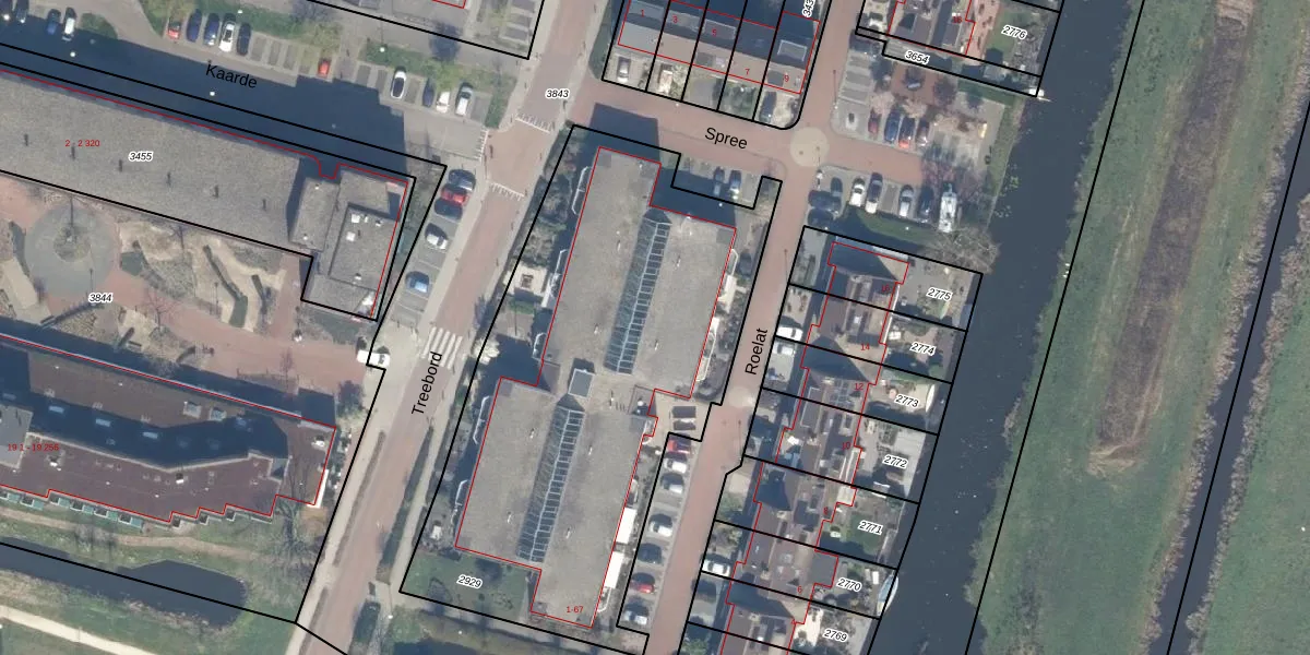 Het perceel waarop Roelat 53 staat heeft een oppervlakte van 2508 m². Dit is een zeer groot perceel. De perceeloppervlakte wordt geregistreerd door het Kadaster. Gedetailleerde informatie over de maten van dit perceel kunt u vinden in het rapport Kadastrale kaart met maatvoering van Roelat 53.